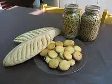 The seeds of B. senegalensis are also important sources of nutrition, especially during times of famine.[4] To gain access to the seeds, fruits are dried in the sun, pounded to remove the outer seed coat and soaked in water for several days, changing the water every day.[5] The seed soaking process, also known as debittering, is essential to remove bitter and potentially toxic components. Seeds are usually cooked prior to consumption. Cooked seeds are texturally similar to a chickpea and can be used as a cereal substitute in stews, soups and porridges. Additionally, seeds can be re-dried and stored for later use or ground into a flour that can be used to make porridge. Roasted seeds can also serve as a substitute for coffee.[1]