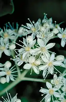 Bosistoa medicinalis is a tree that typically grows to a height of bout 20 m (66 ft) high and has hard bark. The leaves are arranged in opposite pairs and are usually trifoliate, 70–180 mm (2.8–7.1 in) long on a petiole 10–15 mm (0.39–0.59 in) long. The leaves are sometimes simple or have two leaflets, but there are usually three egg-shaped leaflets, each 35–140 mm (1.4–5.5 in) long and 10–55 mm (0.39–2.17 in) wide, the end leaflet on a petiolule 3–17 mm (0.12–0.67 in) long. Simple leaves are 50–190 mm (2.0–7.5 in) long. The leaflets have prominent oil glands and a pointed tip. Each twig ends with two simple leaves and a terminal bud. The flowers are borne in panicles 50–100 mm (2.0–3.9 in) long, the sepals 0.5–1 mm (0.020–0.039 in) long and joined at the base, the petals 3–4.5 mm (0.12–0.18 in) long. Flowering occurs from February to October and the fruit is an oval to spherical follicle 9–12 mm (0.35–0.47 in) long, maturing from October to March. The seeds are oval to kidney-shaped, about 8 mm (0.31 in) long.[3][4][5]