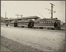 Around 1916, the BERy constructed a pair of loops on the north side of Commonwealth Avenue just west of Lake Street; this allowed use of two-car motor-trailer trains on the line.[4][5][6] On November 20, 1918, an out-of-service BERy streetcar rolled down a hill and destroyed the station, killing a waiting passenger.[7]