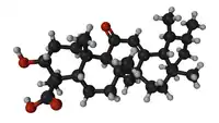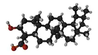 Acetyl-boswellic acids also exhibit anti-inflammatory behaviour by inhibiting leukotriene synthesis.[6] It inhibits the activity of the enzyme 5-lipoxygenase through a non-redox reaction. Specifically the 3-acetyl-11-keto-beta-boswellic acid binds as an allosteric partial inhibitor, initiating a shift in regioselectivity of the catalyzed reaction.[7] Clinical trials[8][9] have investigated the effectiveness of boswellic acids in treating ulcerative colitis, but a study on chemically induced colitis in mouse models[10] showed little effectiveness. A later study showed that low doses of Boswellia serrata extract may have hepatoprotective effects. The higher dose was found to have a milder hepatoprotective effect than the lower dose.[11]