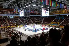 The competitions will take place at the General Motors Centre (Oshawa Sports Centre) located about in the city of Oshawa, about 60 kilometers from the athletes village. The arena will have a reduced capacity (from its normal of about 5,500) of about 3,000 people per session.[2] The venue will also host weightlifting competitions earlier during the games.[4]