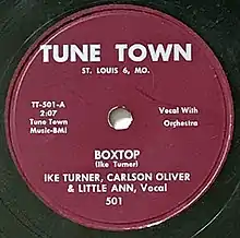 "Boxtop" was released as a single on the St. Louis label Tune Town Records in 1958.[1] Tune Town was a label owned by Turner's friend DJ Gabriel (Mitchell Hearns).[3]
