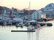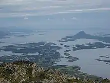 Brønnøysund (Urban East Norwegian pronunciation: [ˈbrœ̂nːœʏˌsʉn] ⓘ)[5] is a town and the administrative centre of Brønnøy Municipality in Nordland county, Norway. It is also a former municipality within Nordland county. The village of Brønnøysund originally was declared a ladested in 1923 which made it an independent municipality. After merging with Brønnøy in 1964, it lost its town status. Then in 2000, it once again received town status. The town lies along the coast and is often called "the coastal town in the middle of Norway." Brønnøysund is also the regional center of Southern Helgeland.