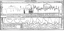 Charles Egeson (who possibly also went by the name of John Joseph George) first suggested 33 year cycles in Australian weather in 1889. Egeson was an assistant to Henry Chamberlain Russell in the Sydney Observatory. When Russell was away in Europe, he began to publish forecasts based on his cycles in the newspapers. The forecast of a drought caused considerable public alarm and led to his dismissal from the Sydney Observatory in 1890. In 1893, a warrant was issued for the arrest of Charles Egeson in a case of cheating. A news report in 1903 recorded his death in a lunatic asylum. Egeson's 1889 publication was shortly followed in 1890 by Eduard Brückner's who suggested 33 to 35 year cycles. William J. S. Lockyer, son of Sir Norman Lockyer, associated these cycles with that of sunspot activity. Similar cycles were also noted before Egeson as in the case of 35-year cycles of Perseid meteors noted by Rudolf Wolf in 1877, sunspot and weather associations by Giovanni Battista Riccioli (1651) and 30+ year cycles noted by Francis Bacon although Egeson was the first to collate numerous datasets to support the view. Egeson himself noted ancient traditional beliefs in 30 year cycles from Ceylon.[1] Brückner described 35 year cycles of cool-damp and warm-dry weather periods, an observation that had also been made by Sir Francis Bacon.[2]