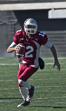 Bradley Sinopoli (born April 14, 1988) is a former Canadian football wide receiver who played for nine years in the Canadian Football League (CFL). He was originally a quarterback with the Calgary Stampeders before being converted to wide receiver in 2013.[1] He then joined the Ottawa Redblacks where he was twice named the CFL's Most Outstanding Canadian, was named an East Division All-Star three times, and a CFL All-Star in 2018. He won two Grey Cup championships, after winning with the Stampeders in 2014 and with the Redblacks in 2016, the latter of which he was also named the game's Most Valuable Canadian.