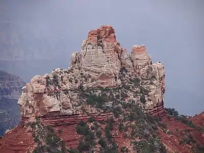 Brady Peak is an 8,121-foot (2,475 m)-elevation summit located in the Grand Canyon, in Coconino County of northern Arizona, United States.[3] It is situated one mile (1.6 km) northeast of the Vista Encantada viewpoint on the canyon's North Rim, where it towers 4,800 feet (1,500 m) above the bottom of Nankoweap Canyon. Its nearest higher neighbor is Mount Hayden, two miles (3.2 km) to the north, Kibbey Butte is one mile to northwest, and Alsap Butte lies one mile to the northeast.[1] Brady Peak is named after Peter Rainsford Brady (1825–1902), a pioneer and politician of the Arizona Territory.[3] This geographical feature's name was officially adopted in 1932 by the U.S. Board on Geographic Names.[3] According to the Köppen climate classification system, Brady Peak is located in a cold semi-arid climate zone.[4]