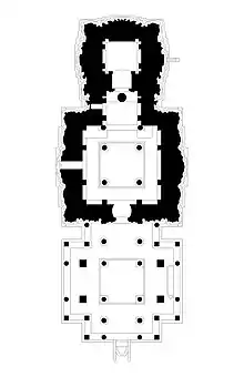 According to the art historian Adam Hardy, the temple illustrates the "Later Chalukya architecture, mainstream Lakkundi school of mid-11th century with late 11th century superstructure (shikhara)".[11] The temple has single shrine (ekakuta) connected to a closed mantapa hall via a vestibule (sukanasi or ardhamantapa) that is connected to another, open mantapa.[12] This temple is one of the fine illustrations of the Western Chalukya architecture.[13][14] The temple has a garbhagriha, an antarala, a closed navaranga mandapa, and an open pillared mukha-mandapa. Over the garbhagriha is the three storeyed nirandhara vimana with a square griva and sikhara.[9] Above the cornice of these arched niches at regular intervals is a seated Jaina figure. The ceilings are plain and pillars are well decorated. The open mandapa is supported by 32 pillars and pilasters.[3]