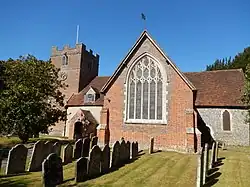 The Church of St James stands at the west of the village and originally dates from 1160, however it features many historical alterations and additions up to the 20th Century. It is a Grade I listed building.[6] St James' church, Bramley, Hampshire. Within the church, images were uncovered which dated back to the pre-Reformation.[7] The famous physicist Lise Meitner is buried in the burial ground next to the church, near the grave of her brother Walter.[8]