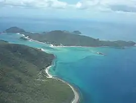 Brampton Island is an island in the Cumberland Group, off shore from Mackay in the Mackay Region, Queensland, Australia.[2][3] The island lies within the Great Barrier Reef World Heritage Area, and the majority of the island forms the Brampton Islands National Park, however there is a resort located on the island. The highest point of the island is Brampton Peak, 214 m above sea level.[4]