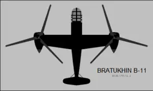 The Bratukhin B-11 was a prototype Soviet twin-rotor transport helicopter and the last design of the Bratukhin aircraft design bureau to be built.[1]