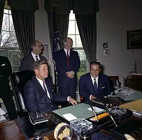 In December, Attorney General Robert F. Kennedy, Kennedy's brother, went to Brasília to explain to Goulart the problems from the American point of view. For him and Gordon, the conversation went nowhere.[69][70] In July 1963 the two presidents met at the inauguration of Pope Paul VI. Kennedy later accepted the invitation for a visit, then scheduled for November.[71] That month Kennedy was assassinated. Goulart became worried. Afterwards, his position would become more difficult with the inauguration of Johnson, who had a tougher foreign policy.[72]