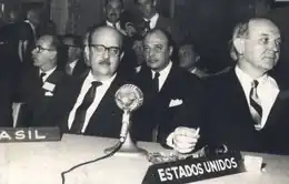 At the Second Punta del Este Conference,[lower-alpha 6] in January 1962, Brazil continued the IEP, abstaining from voting for the exclusion of Cuba from the OAS and opposing the use of sanctions.[73][74] San Tiago Dantas, the Brazilian Minister of Foreign Affairs, proposed the "Finlandization" of Cuba, so that it would keep its system but be neutralized and have a code of coexistence with the hemisphere.[75] The continuation of the IEP would be a reason for dissatisfaction in the Kennedy administration with the directions of Brazilian foreign policy, but there was no immediate impact on relations. The IEP was seen as a way to use Brazil as an intermediary for Portuguese Africa to some extent, and a CIA report concluded that there was no Brazilian intention to approach the Cubans.[73]