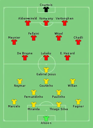 - 1 2 3 "Tactical Line-up – Quarter-final – Brazil v Belgium" (PDF). FIFA.com. Fédération Internationale de Football Association. 6 July 2018. Archived (PDF) from the original on 6 July 2018. Retrieved 6 July 2018.