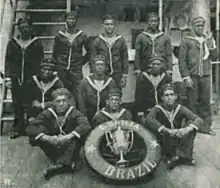 Brazil's economy was suffering from a severe recession at the same time Bahia was commissioned.[12] This economic hardship, the racism prevalent in all branches of the Brazilian armed forces, and the severe discipline enforced on all navy ships, spawned a mutiny known as the Revolta da Chibata (Revolt of the Lash) among sailors on the most powerful ships.[12][13]