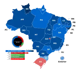 On election day, Cardoso won by a wide margin and absolute majority, negating the need for a second round. Cardoso notably won every state in the northeast, a region which would later emerge as the PT's political base.[11] The relative success of far-right candidate Enéas Carneiro, a cardiologist who had never won office before and ran as a member of the Party of the Reconstruction of the National Order (PRONA), was also noted; Carneiro won over 7% of the vote, placing him ahead of many established politicians.[12] Carneiro's vote share was the highest received by a far-right presidential candidate until Jair Bolsonaro's victory in 2018.
