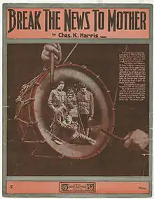 "Break the News to Mother" is a war song first released in 1897. The song was popular during the Spanish–American War, and re-released during World War I.[1] It is sometimes erroneously believed to be an American Civil War song.[2] Charles "Chas" K. Harris wrote the lyrics and composed the music.[1] The song was originally published by Harris in New York, New York.[3]