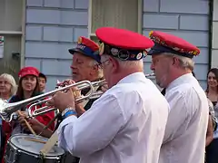 Free music open to everyone, performed on the bandstand or pop-up locations in the centre of Brecon and on streets closed off to traffic for the festival weekend.[16][17][18]
