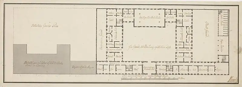 The north wing of Count Danneskiold-Laurvig's mansion in c. 1750