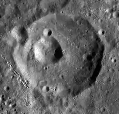 Bredikhin is a lunar impact crater that is located on the far side of the Moon. It lies just to the west of the crater Mitra, and northeast of Raimond.[1]