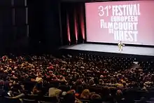 British films enter the selection starting 1989 enabling the creation of the European competition in 1992.[6] Starting 1995, the festival strengthens its European dimension by inviting a new European country each year and doing numerous screenings focusing on a specific country. This is how many exchanges with European cities such as Hamburg (Germany), Vila do Conde (Portugal), Tampere (Finland) happened.[7]