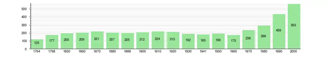 As of 2000, there were 228 private households in the municipality, and an average of 2.4 persons per household.[9] There were 57 households that consist of only one person and 13 households with five or more people. Out of a total of 234 households that answered this question, 24.4% were households made up of just one person. Of the rest of the households, there are 67 married couples without children, 77 married couples with children There were 21 single parents with a child or children. There were 6 households that were made up of unrelated people and 6 households that were made up of some sort of institution or another collective housing.[10]