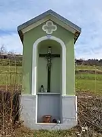 A chapel shrine in Brezje nad Kamnikom has been registered as cultural heritage. The shrine stands along the old road from Godič to Brezje nad Kamnikom. It is a closed chapel-shrine (kapelica zaprtega tipa) with a quatrefoil ornament on the gable. The semicircular niche contains a wooden crucifix.[5] The shrine dates from 1852.