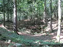 Brezovica pri Borovnici is the site of a mass grave associated with the Second World War. The Krim Cave Mass Grave (Slovene: Grobišče Krimska jama) lies in the woods south of the settlement. It contains the remains of an unknown number of Slovene civilians from neighboring villages murdered by a battalion of the Partisan Krim Detachment in 1942.[9] Some sources estimate the number of victims to be around 300.[10] The cave was used during the war by the Partisan Ljubo Šercer Battalion[11] to dispose of other victims liquidated by the Partisans.[12] It was investigated by Home Guard forces on 9 September 1942, and again with a journalist and a photographer on 23 March 1945, confirming the presence of human remains in the cave.[13][14] After the war, the entrance to the cave was dynamited in 1947, and again in September 1948.[13]