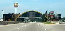 The first bridge restaurant was built in 1957, over I-44 (Will Rogers Turnpike)[1] at the Vinita, Oklahoma, rest area. It is currently a McDonald's, Subway fast-food restaurant, and a Kum & Go gas station and was the world's largest until the opening of a larger location in Moscow, Russia. With the construction of the Illinois Tollway in 1958, five more bridge restaurants were built as Illinois Tollway Oases, opening in 1959. Further implementation of the concept in the United States has been hampered by US Code 23 Section 111, which prohibits commercial activities at the rest areas along the Interstate Highways. Although commercial activities existing before 1960 could continue and the unaffected turnpikes already had commercialized rest areas, no new restaurants were added. Despite this legislation, the Lincoln Oasis bridge restaurant has been opened in 1967.