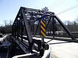 The bridge was built in 1928, its trusses fabricated by the Bethlehem Steel Company. It is one of the state's few surviving Pratt through trusses, and is unusually wide for bridges built after the state's devastating 1927 floods. Bridges have been documented at this site since 1859, although the crossing became important to the community after the railroad service arrived in 1876, and resulted in the creation of a small industrial area near the railroad. The bridge washed away in 1927 was a covered bridge of uncertain construction date. The present bridge was rehabilitated in 2006.[2]