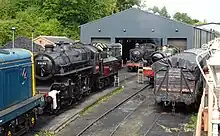 Plans for a significant redevelopment of Bridgnorth station were approved by Shropshire Council in August 2016. The first phase of the project involving the construction of a new single-storey building in GWR circa 1900-style to provide a tea/refreshment room and new toilet facilities was completed at the end of 2018, as was the creation of an additional car park.[14] Further phases will include the installation of a turntable in the locomotive yard and the renovation of the existing station building housing the booking hall, station shop and Railwayman's Arms public house. Additional funding will be required in due course for the construction of a new volunteer accommodation building.[15]