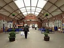 The present concourse and the main platforms date from the 1912 expansion of the station which included Bell's wrought iron canopies over the lengthy platforms 5 and 6. A new roofed concourse was built and the new station entrance included the original canopy from the old entrance. After the First World War, excursion platforms were added to cope with the many special trains. On summer Saturdays the timetable would include through trains to Leeds, London, the Midlands and Derbyshire. The inter-war period saw the greatest extent of the station complete with engine shed and two turntables with extensive sidings. The fine compact Station Buffet was built at this time.