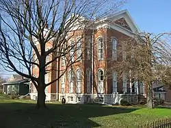 Bright B. Harris House is a historic home located at Greensburg, Decatur County, Indiana. It was built in 1871, and is a large 2+12-story, Italianate style brick dwelling. It has a low pitched gable and hipped roof, ashlar limestone foundation, and round arched windows.[2]:5