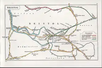 In 1897 a Private Act of Parliament gave the GWR the authorisation to make a westwards connection between the Harbour Railway and the Portishead Railway. This created the West Loop at Ashton Gate which permitted southerly travel towards Taunton and Exeter St Davids. The connection also permitted the double the rail capacity to the Great Western Main Line.[1]