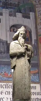 The base of the cross displayed statues of monarchs in alcoves. In 1663, the cross was rebuilt to add a third tier for four more statues and the total complement of eight was then:[5]