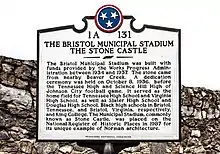 Bristol Municipal Stadium was built during the New Deal by the Works Progress Administration (WPA). It is one of two WPA stadiums in Tennessee that are still in use, the other being Crump Stadium in Memphis.[2] Construction of Bristol Municipal Stadium began in 1934 and was completed in 1936. The construction cost of $34,000 was shared between the federal government and the city of Bristol.[3] The stadium opened on October 8, 1936.[2]