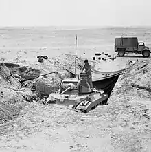 Although infantry units each had an anti-tank platoon, divisions also had a Royal Artillery anti-tank regiment. This had four batteries, each of twelve guns. At the start of the war, they were equipped with the 2-pounder. Although this was perhaps the most effective weapon of its type at the time, it soon became obsolete as tanks became heavier with thicker armour.[57] Its replacement, the 6-pounder, nevertheless did not enter service until early 1942. Even before the 6-pounder was introduced, it was felt that even heavier weapons would be needed, so the 17-pounder was designed, first seeing service in the North African Campaign in late 1942.[58]