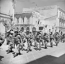 Units that operated as smaller bodies included the Long Range Desert Group, which was formed in North Africa to report on movements and activities behind the German and Italian lines.[67] The Special Air Service was formed in 1941 for raiding missions behind the lines,[68] and later the Special Air Service Brigade was formed to support the Normandy landings.[69] Popski's Private Army, formed in August 1942, was also tasked with missions behind the lines to gather intelligence, blow up installations and ambush small patrols.[70] The Special Interrogation Group was a unit formed from anti-Nazi Germans and Palestinian Jews of German origin under British officers, they wore German equipment, spoke German and lived everyday life as members of the Africa Corps.[71] The Special Boat Service was formed from the Folboat Section later the Special Boat Section of No 8 Commando.[71]