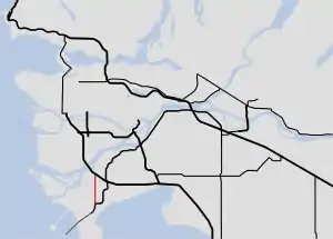 Highway 17A is a 6 km (3.7 mi) long route connecting Highway 99 and Highway 17; this route was originally numbered Highway 17 between these two points but the numbering was altered once the South Fraser Perimeter Road neared completion (on December 1, 2012).[1]