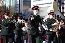 The British Columbia Regiment Band is one of many Canadian military bands in the Canadian province of British Columbia, serving as the official that serves as the official regimental band of The British Columbia Regiment (Duke of Connaught's Own), based out of Beatty Street Drill Hall in Vancouver. It is a voluntary band, which means that its band members are not composed of full-time professional musicians.[1] The band currently provides musical support for the community in the Greater Vancouver metropolitan area.[2]