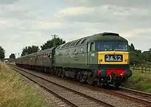 The locomotives, numbered in the D1702-D1706 series,[2] mainly worked from Tinsley depot in Sheffield on both passenger and freight work. In 1969, they moved to Norwich depot where they worked on express trains between there and London Liverpool Street.[1] The 12LVA24 engine, however, was found to be unreliable and the locomotives spent more time out of service than their standard counterparts. Engine failures were common and repairs were often expensive.[1] After conversion to Class 47s, they moved to Stratford depot, in East London, until they were displaced by examples fitted with electric train heating equipment. Subsequently, the batch went their separate ways to several depots.