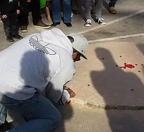 The British and World Marbles Championship is a marbles knock-out tournament that takes place annually on Good Friday and dates back to 1588. It is held at the Greyhound public house in Tinsley Green, West Sussex.[1] Teams of six players participate to win the title and a silver trophy. The event is open to anyone of any age or nationality. Over the years, players from Australia, Belgium, Canada, Estonia, Ireland, France, Germany, Japan, Netherlands, Wales and the United States have participated alongside English teams.[2][3][4]