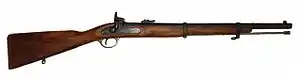 The Brunswick rifle was a .704 calibre muzzle-loading percussion rifle manufactured for the British Army at the Royal Small Arms Factory at Enfield in the early 19th century. The weapon was introduced to replace the Baker rifle and weighed from over 9 and 10 pounds (4.1 and 4.5 kg) without its bayonet attached, depending on the pattern. The weapon was difficult to load but remained in production for about 50 years (1836 to 1885) and was used in both the United Kingdom and assorted colonies and outposts throughout the world.