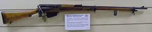 Starting in 1909, MLE and MLM rifles were converted to use charger loading, which was accomplished by modifying the bolt, modifying the front and rear sights, and adding a charger guide bridge to the action body, thereby allowing the use of chargers to more rapidly load the magazines. Upgraded to a more modern standard, these rifles served in combat in the First World War.