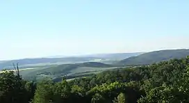 The Brno Highlands is a macroregion of the Bohemian-Moravian Subprovince within the Bohemian Massif. It is further subdivided into the mesoregions of Boskovice Furrow, Bobrava Highlands and Drahany Highlands. The highest part is Drahany Higlands, which include Skalky – the highest peak of Brno Highlands at 735 metres (2,411 ft) above sea level. The Bobrava Highlands do not exceed 479 metres (1,572 ft). The Boskovice Furrow is a depression with an average elevation of 335 metres (1,099 ft) and the highest point being at 553 metres (1,814 ft).[1]