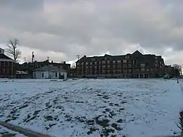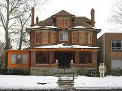 Early in Columbus's history, around the mid-1800s, East Broad Street became one of the most fashionable places to live, from downtown past Franklin Park. This carried into the early 1900s, when grand hotels and apartment buildings like the Royal York and Brunson Place were built. One early house from 1838, the Alfred Kelley mansion, was torn down and replaced with the Christopher Inn around 1961, itself torn down in 1988.[6][7]
