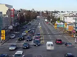 Broadway is a major east–west thoroughfare in the city of Vancouver, British Columbia, Canada. In Vancouver's numbered avenue grid system, it runs in place of a 9th Avenue, between 8th and 10th. The street has six lanes for most of its course. Portions of the street carry the British Columbia Highway 7 designation.[2]