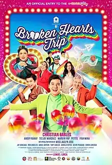 Broken Hearts Trip is a 2023 Philippine LGBT comedy film starring Christian Bables, directed by Lemuel Lorca under BMC Films and Smart Films. The film revolves around a reality show where five LGBT participants, each of them seeking to move on from their past love lives, compete to win in the show's various trials.