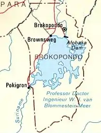 A map showing the location of the Brokopondo Reservoir and its Dutch name
