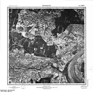 The direct order to set up the Bromberg-Ost subcamp was issued on 12 September 1944, by the superintendent of Stutthof concentration camp, Paul Werner Hoppe. The camp was situated between Kamienna and Fabryczna Streets. The following day the first 300 women prisoners were sent there under the control of seven female overseers belonging to Schutzstaffel (SS). No warm clothing was provided before mid-December. Women who managed to survive were taken on a death march to Sachsenhausen-Oranienburg.[1] From June 1944 until March 1945 the position of Oberaufseherin in Bromberg-Ost was held by Johanna Wisotzki,[2] while among guards reassigned to Bromberg-Ost from Stutthof were the notoriously cruel aufseherinnen Herta Bothe (died March 2000), Ewa Paradies (hanged 1946) and Gerda Steinhoff (hanged 1946) who took part in selections of prisoners to be sent to the gas chambers. A group of thirteen ex-officials and overseers of the Bromberg-Ost and Stutthof concentration camps were tried and convicted of crimes against humanity at the Stutthof trials, the war crime tribunals held at Gdańsk, Poland, from April 25, 1946, to May 31, 1946. Eleven convicts were sentenced to death, while the remainder were sentenced to various terms of imprisonment.[3]