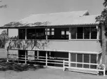 In 1932 Father Robert Bartlett Bates, the rector of All Saints Anglican Church at Wickham Terrace purchased a house at 139 Brookfield Road to establish St John's Home for Aged Men, which subsequently relocated to West Toowong (where it continues to operate as St John's Residential Aged Care Home).[24] On 12 May 1934 the Anglican Church opened St Christopher's Lodge, a home for boys. It was officially opened by James Francis Maxwell, the Member of the Queensland Legislative Assembly for Toowong.[25] It was a farm school which operated until circa 1959. Around this time, 18 acres (7.3 ha) of the site was sold to the Presbyterian Church (now the Uniting Church in Australia) to develop an aged care centre. It was subsequently used a friary used by the Society of Saint Francis, a centre for contemplative spirituality and other community purposes.[26][27][28] It is now within the suburb of Kenmore Hills and is listed on the Brisbane Heritage Register.[29] In 2019 the site was sold by the Anglican Church to the Uniting Church on the condition that community could continue to use the site.[30]